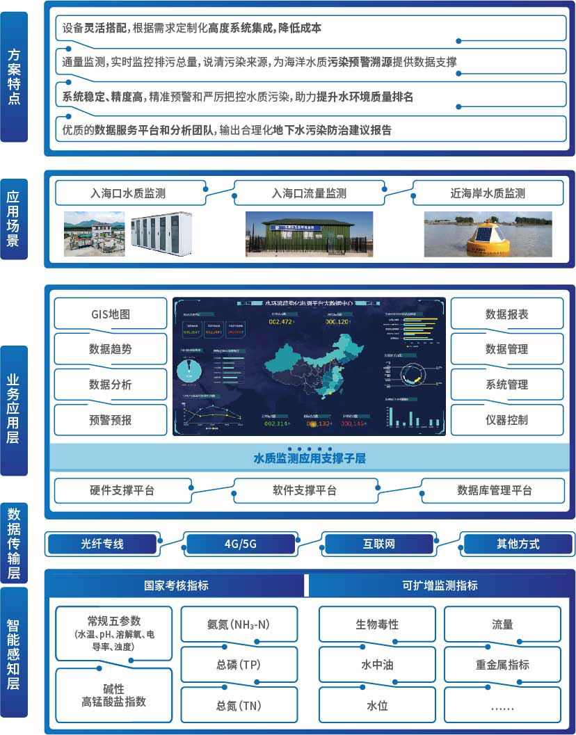 该系统可应用于近海海域、入海口等环境水质监测,可及时、准确地反映水质现状及变化趋势,为水体环境监测、预警、管理、规划等提供准确的实时数据。